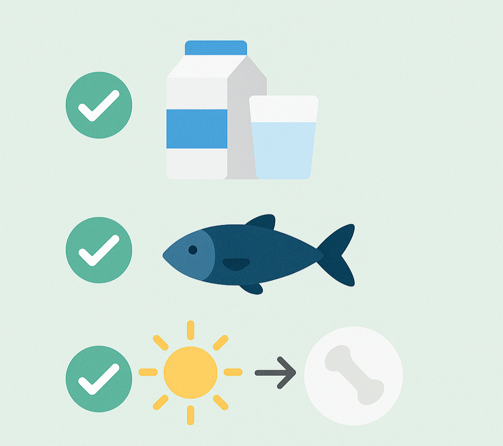 - ✅ 건강기능식품(칼슘, 비타민D) 활용 시 전문가 상담 필수